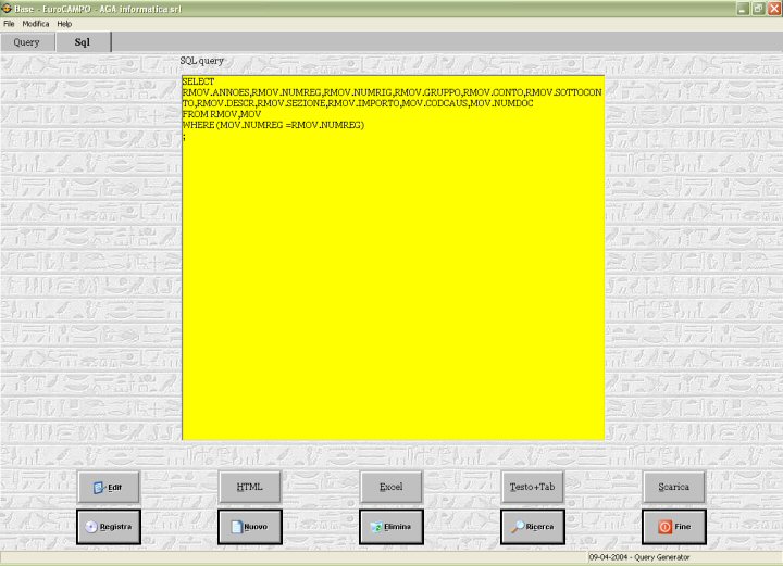 | SQL | Genera il codice SQL corrispondente alle selezioni fatte nella prima pagina. |